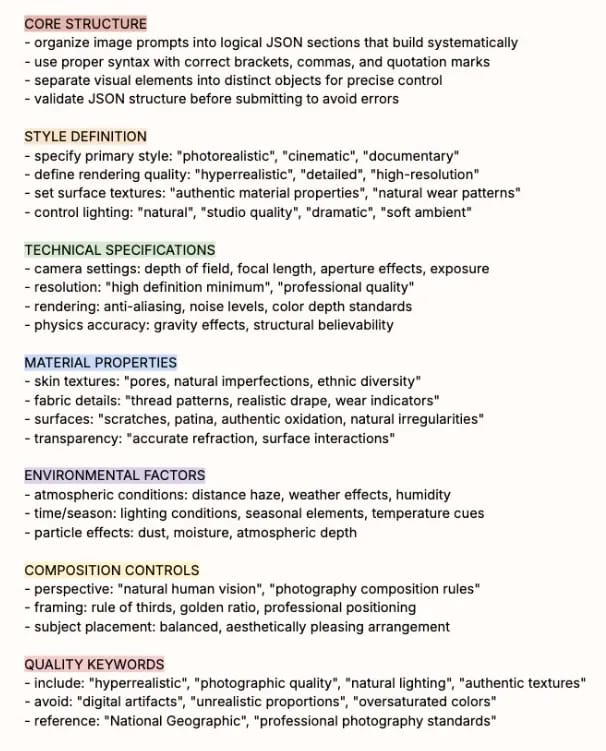 JSON prompts organize your ideas into structured elements rather than run-on sentences. This structured format helps the model better understand your intentions, resulting in cleaner, more precise outputs.